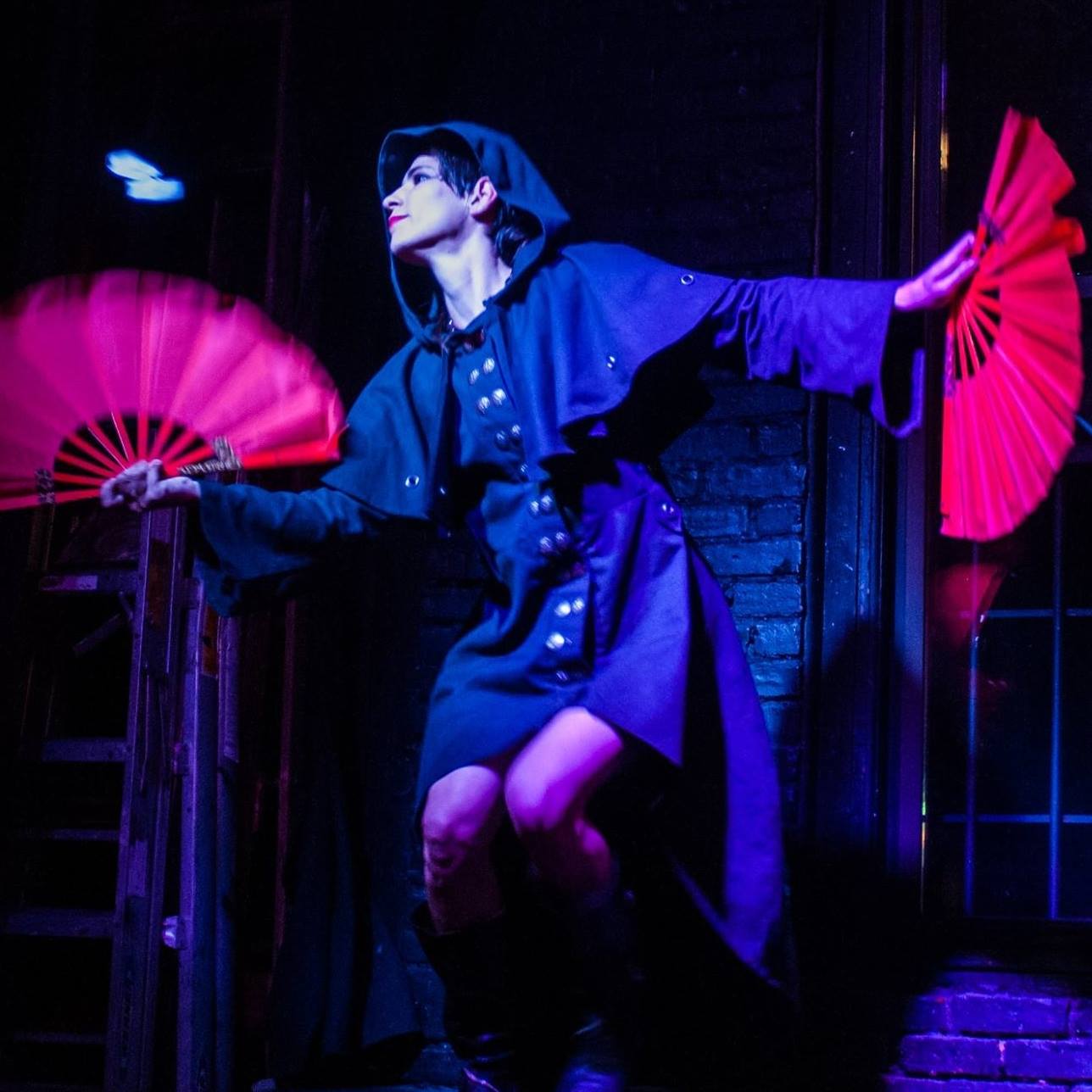 Tara McManus has been spinning things for over 8 years. She started with hoops before moving on to poi, and then she discovered fans and noticed how all the moves transition from one prop to another. She has trained and performed across the country. Her performances include two consecutive years in the flow show in NYC and the Fire Dancing Expo in San Francisco. She also runs The Floasis in Brooklyn, which is a training, rehearsal, film, and jam space for fire spinners and flow artists.